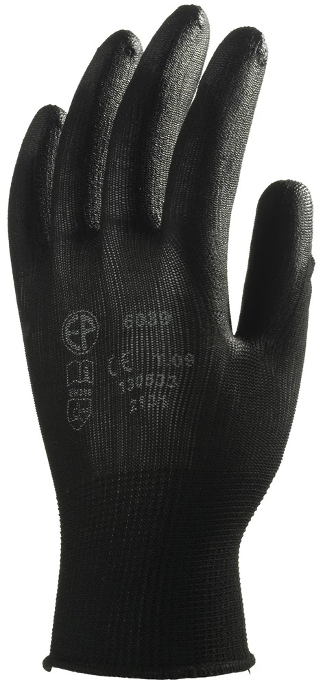 Ismerje meg a Fekete precíziós poliészter kesztyű, PU mártott tenyérrel_8 000670 részletes leírását! Ez a fekete precíziós kesztyű poliészter anyagból készült, PU mártott tenyérrel a kiváló tapadás és precíz fogás érdekében.