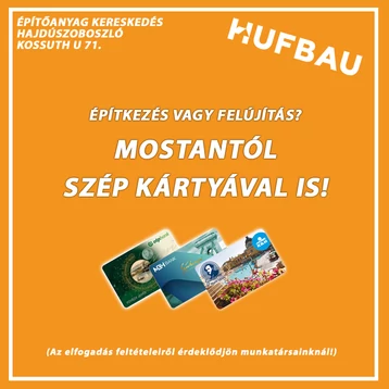 Ne maradjon le erről a lehetőségről! Keressen minket, kérjen ajánlatot, és vásároljon könnyedén SZÉP Kártyával a HUFBAU Hajdúszoboszló Építőanyag Kereskedésben!